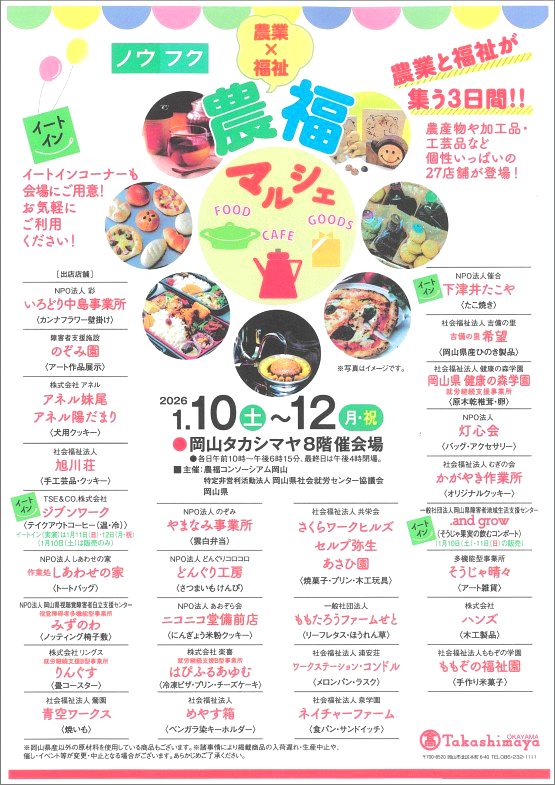 岡山髙島屋で、農福マルシェを開催しています♪